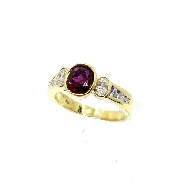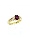 Anello in oro giallo 18kt, rubino e diamanti